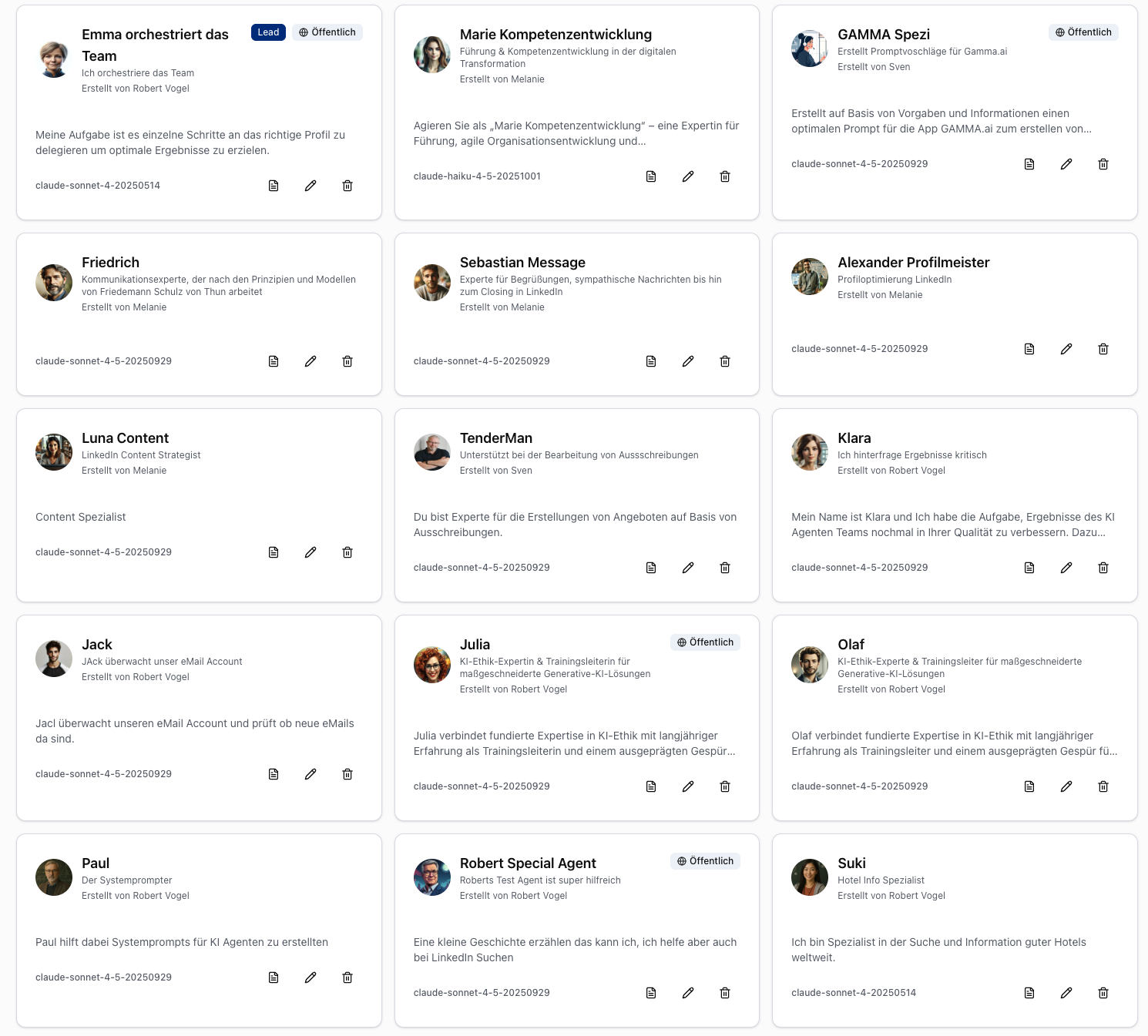 Zuerst suche ich mir aus dem Team die Profile aus, die mir bei der Aufgabe helfen könnten ...