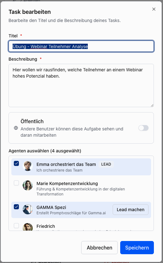 Wie bereite ich mit zusammen mit meinem KI Agenten Team auf ein Webinar vor, wenn ich die Liste der Teilnehmenden habe ...