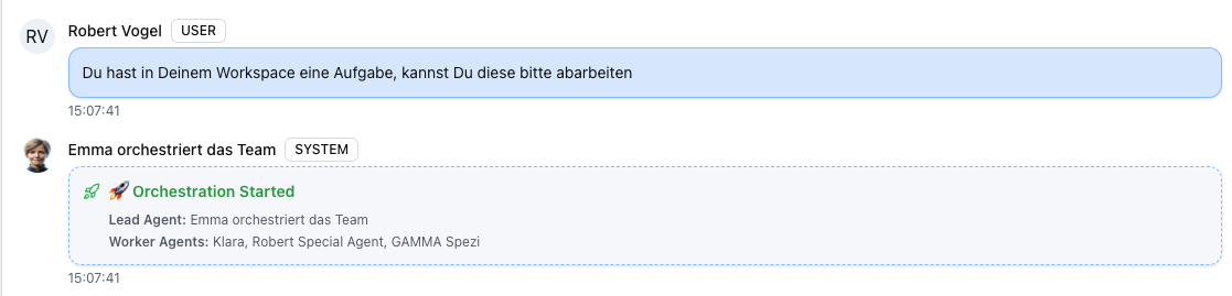 Dann frage ich Emma die Teamleitung zu übernehmen und mit der Aufgabe zu beginnen: